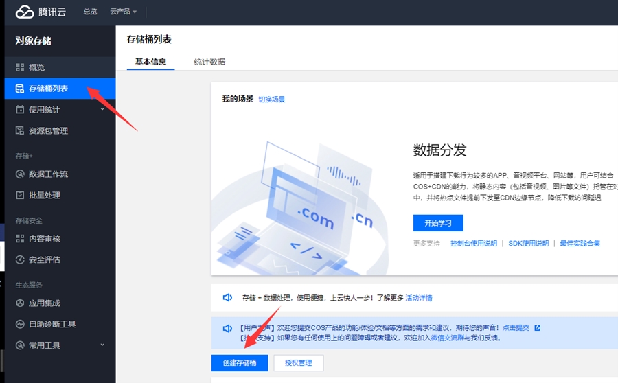 一、登录腾讯云,在云存储中创建【存储桶】名字自己写