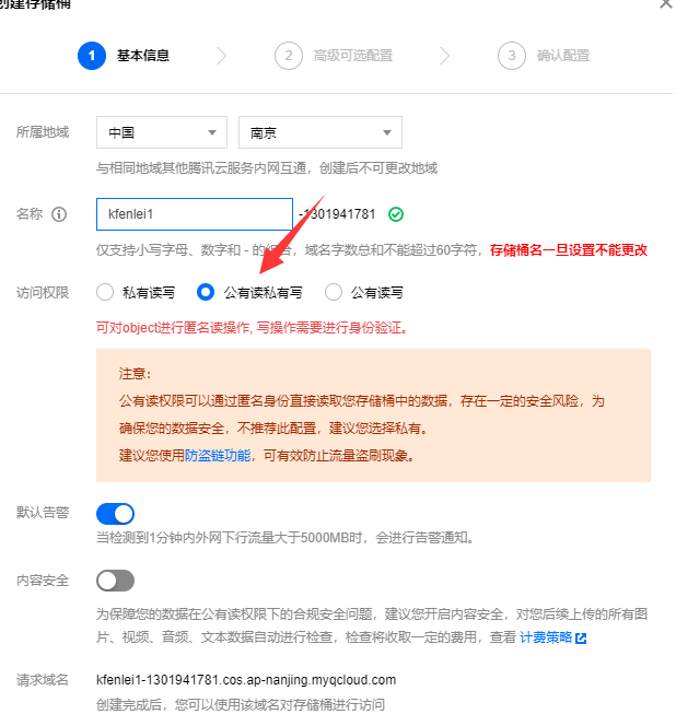 访问权限设置为【公有读私有写】