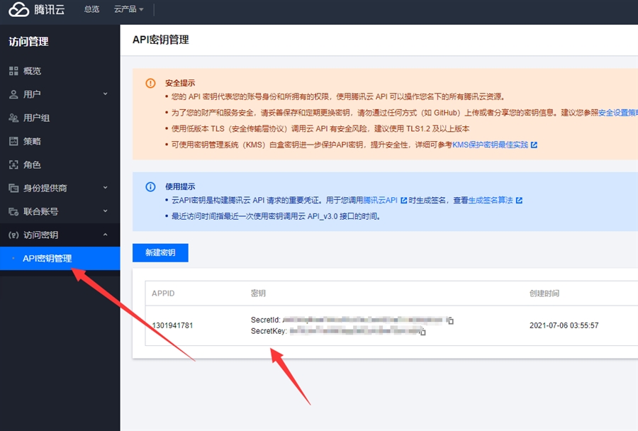 最后把腾讯云的secretid和secretkey也填上就可以了