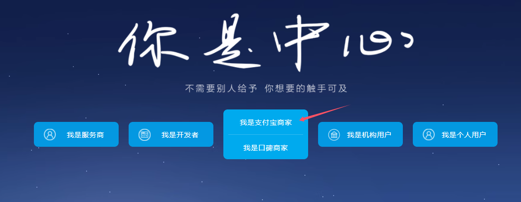 登录支付宝www.alipay.com,点我是支付宝商家,登录你的支付宝账号。