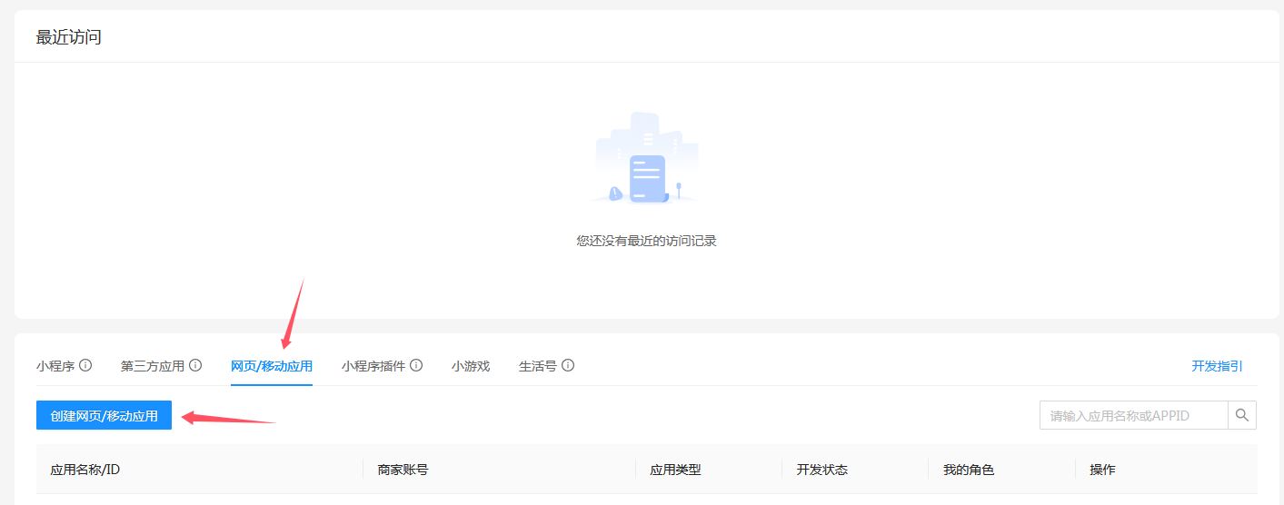 在产品中心中找到手机网站支付和电脑网站支付。分别点击进行开通。