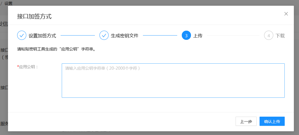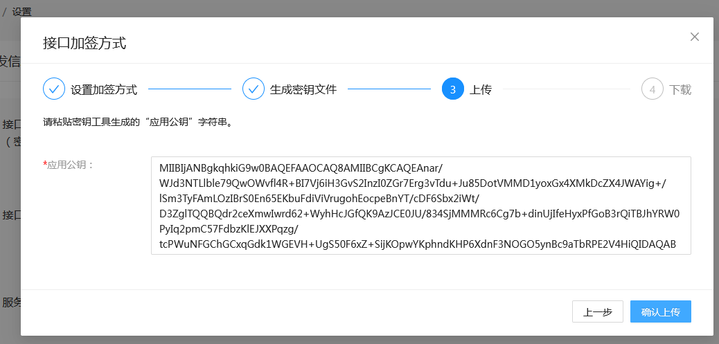 将生成的应用公钥复制填上。密钥生成工具不要关,一会应用私钥还要用。