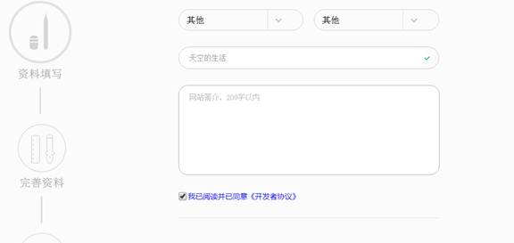 填写资料 网站类别选择其它,网站名称最好和备案上的一至,网站简介自己写一个就可以了