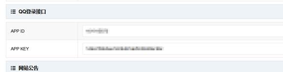 填写到“网站后台网站设置 - QQ登录接口“中的APPIDAPPKEY