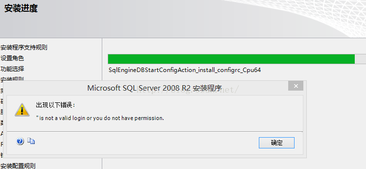 一、安装数据库sqlserver时,提示SQL Server 2008R2安装错误—“is not a valid login or you do have permission”