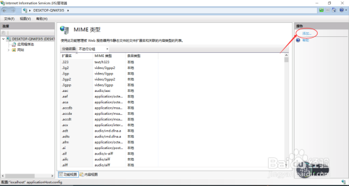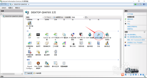 打开服务器IIS管理器,找到MIME类型,如下图所示: