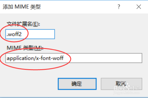 在添加MIME类型中,增加以下信息: