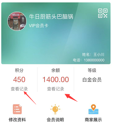 可以帮商家记录会员信息,包括积分、储值。积分储值发生变化时,客户可以收到微信模板消息。