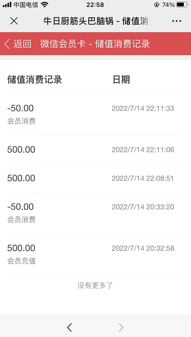 会员也可以在会员卡页面,查询储值、消费、积分记录