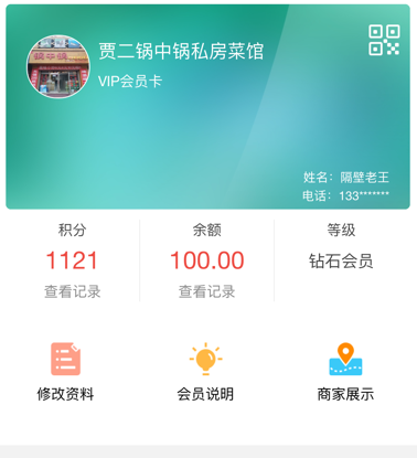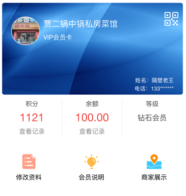 3、成本更低,商家不需要制作大量的会员卡,用户只需要在任何地方扫一扫商家二维码就可以成为商家会员。