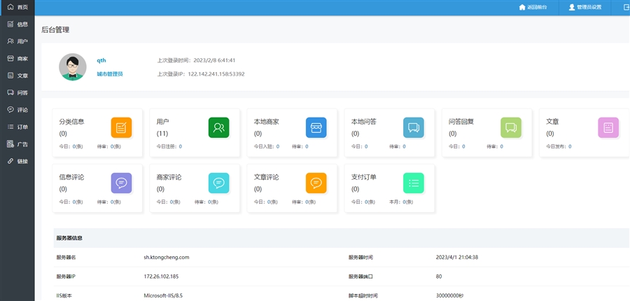 多城市版可以为每个地区的分站设置一个或多个管理员,分站管理员可以管理自己地区下的分类信息、商家、文章、问答、广告。同时可以随时查看到自己分站的收入情况。