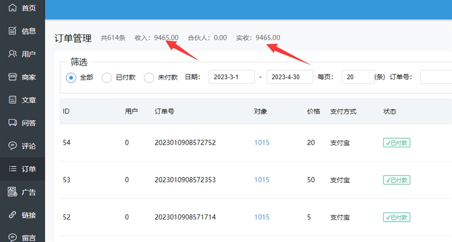 分站管理员可以在订单中,查看网站收入情况,站长可以按比例给分站管理员分红。