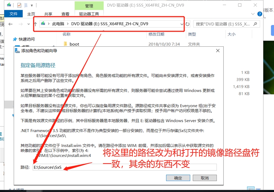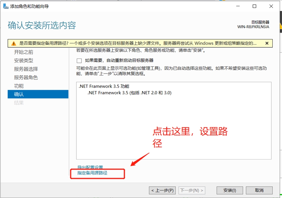 路径选择下载解压的安装源中的sources/sxs目录,如:e:\sources\sxs