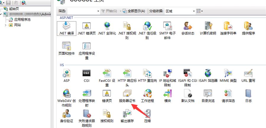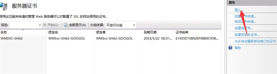 申请好证书后,下载IIS版本(.PFX)上传到服务器并解压,登录服务器远程桌面打开IIS,安装证书