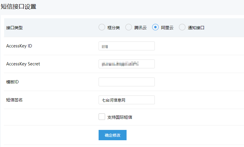 后台短信接口支持阿里云、腾讯云、和通用短信接口配置