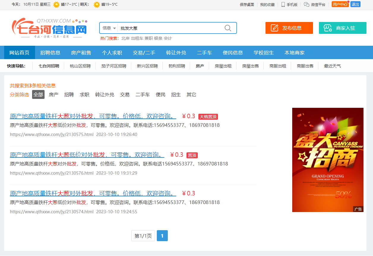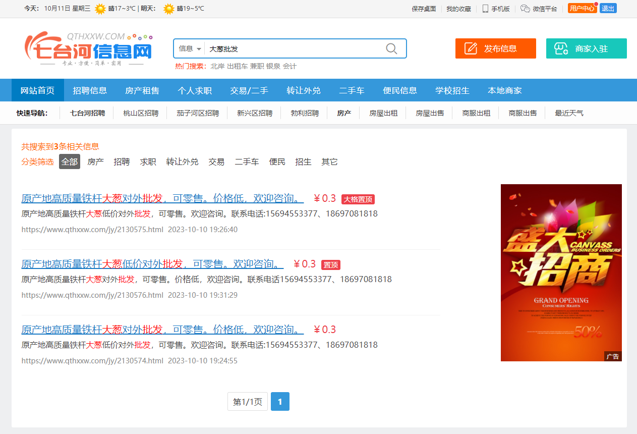 案例如搜索“大葱批发”和“批发大葱”都可以搜索到结果