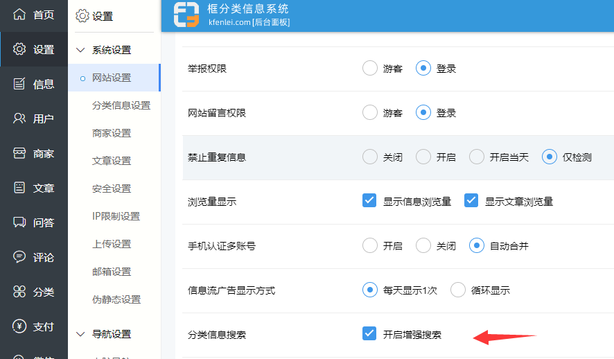后台设置页面
