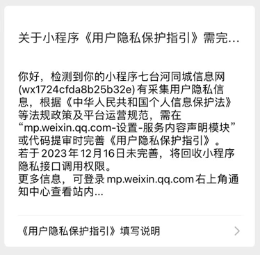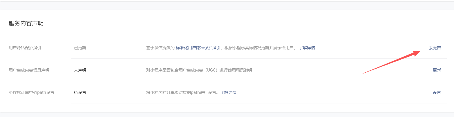 找到服务内容声明 - 用户隐私保护指引,点击去完善