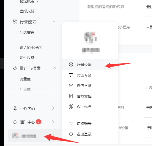 登录小程序,账号设置