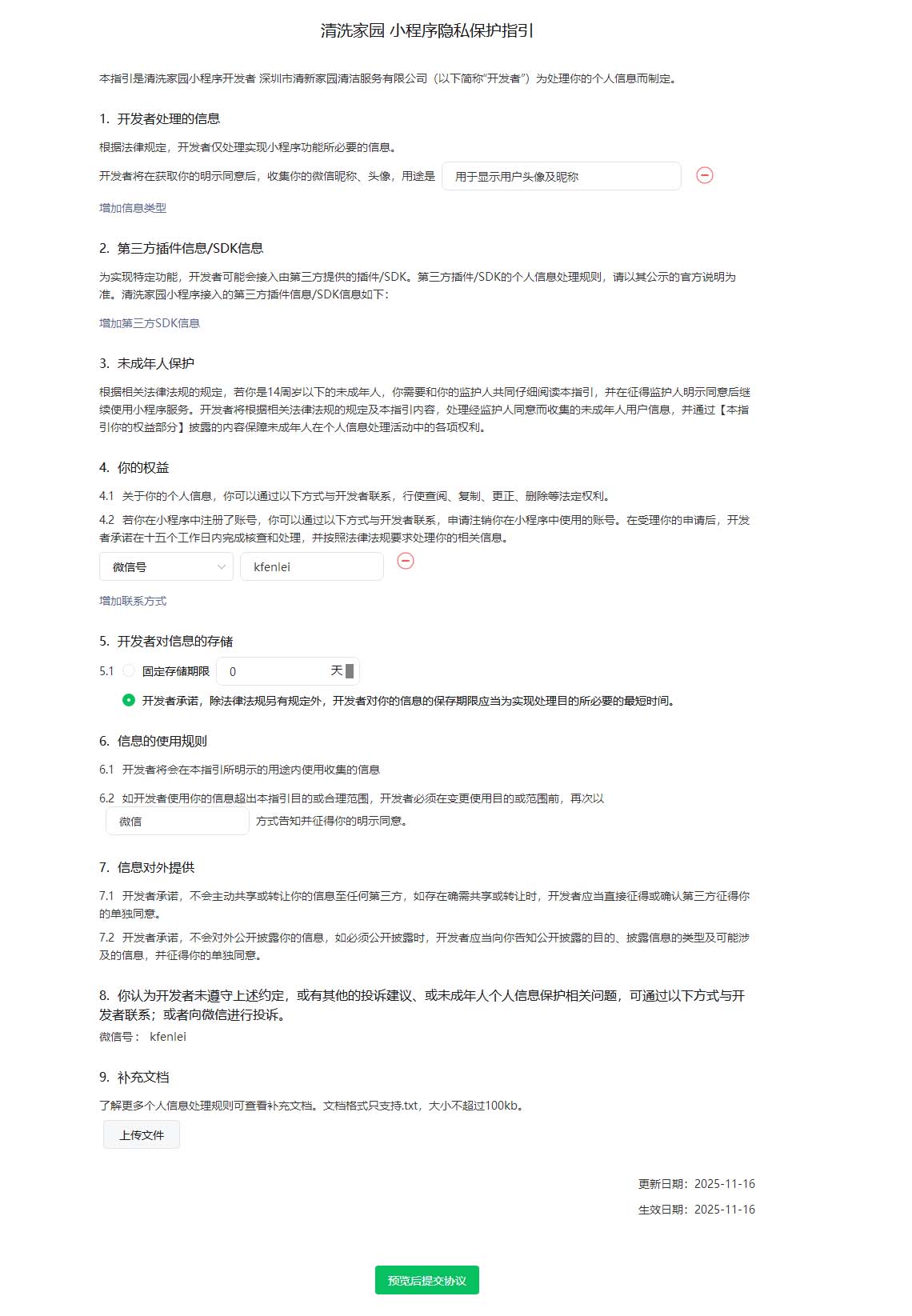按下图填写后点击【预览后提交协议】