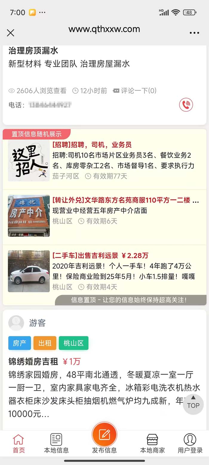 本系统由七台河市广盛网络科技有限公司开发 专业地方同城分类信息源码