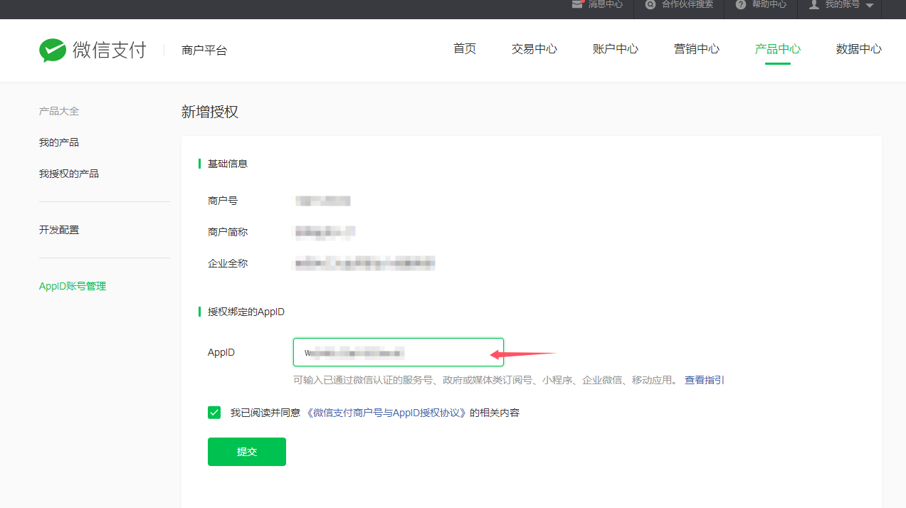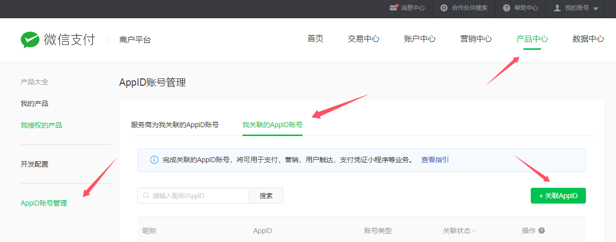 产品中心-AppID账号管理-我关联的AppID账号,点击关联APPID