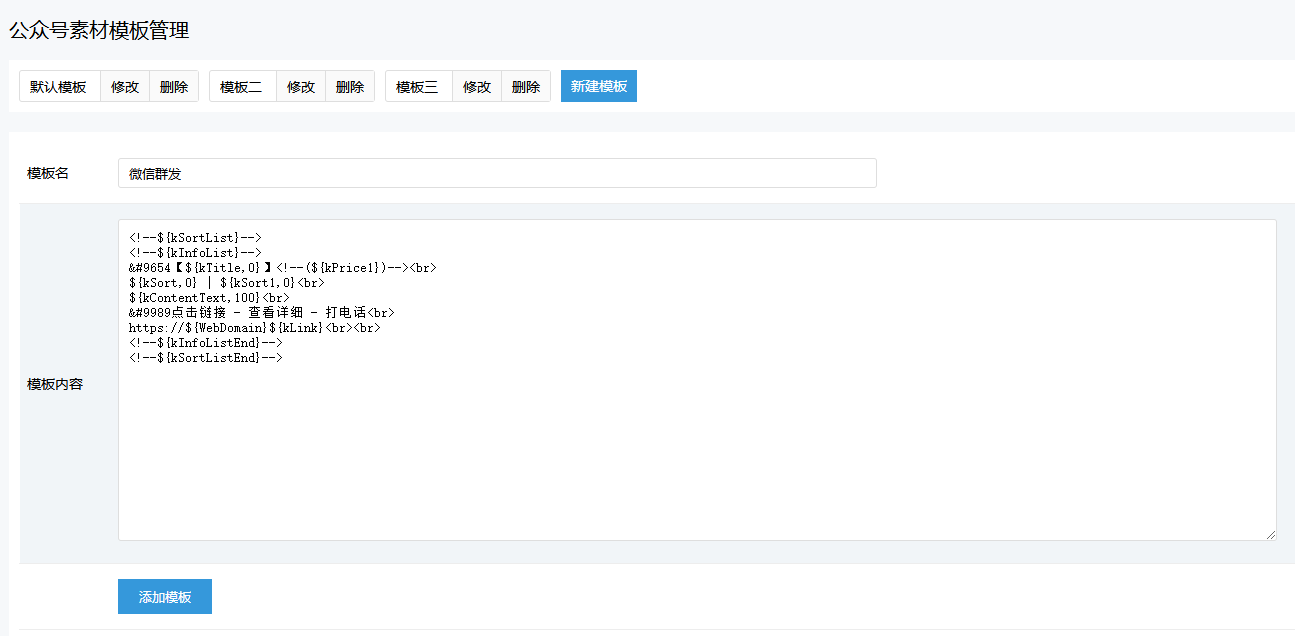 方法:登录后台管理-微信 - 公众号素材管理,点击管理模板