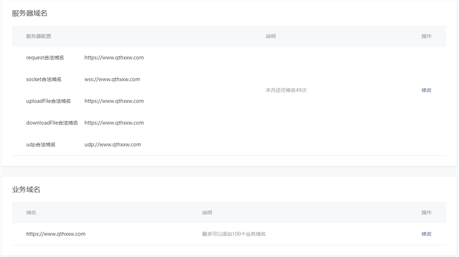 配置服务器域名和业务域名