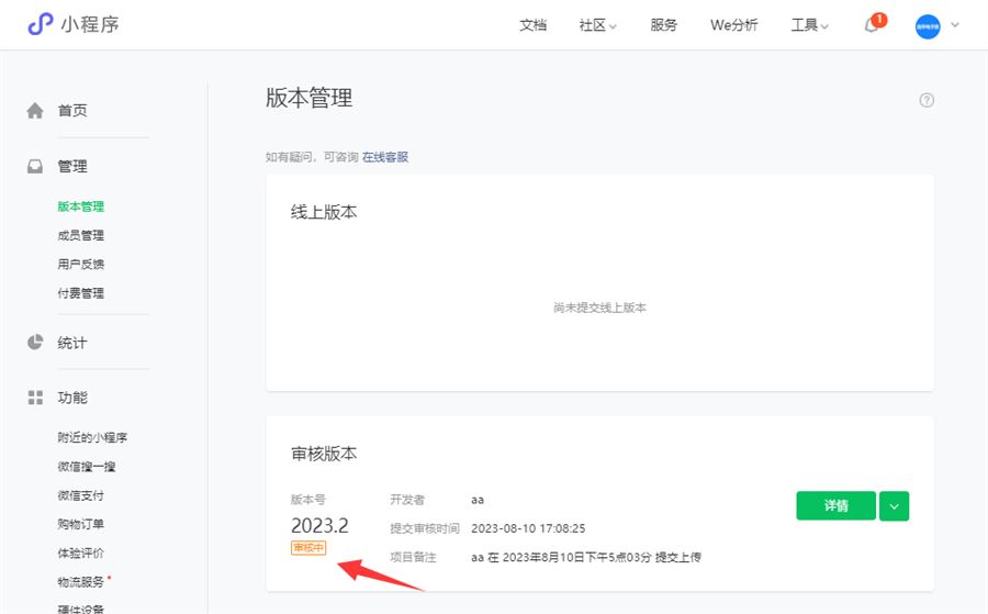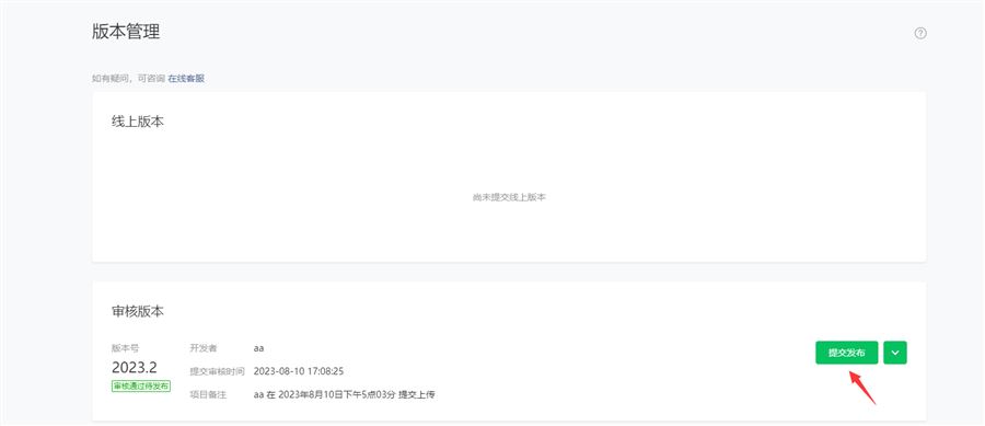 等审核通过后,在版本管理中,点审核通过的版本,点发布上线就可以了