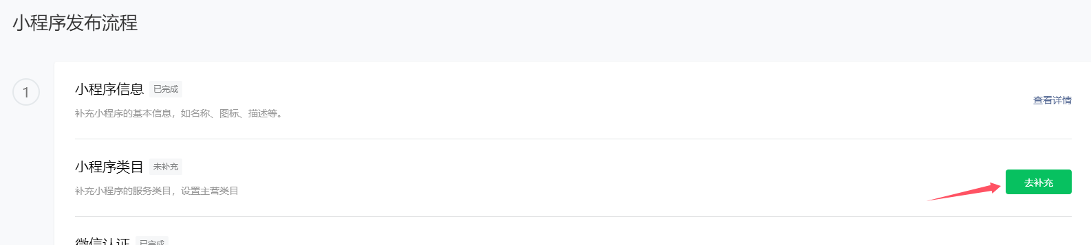 注册认证好小程序后,登录你的小程序,设置类目。