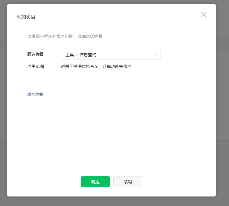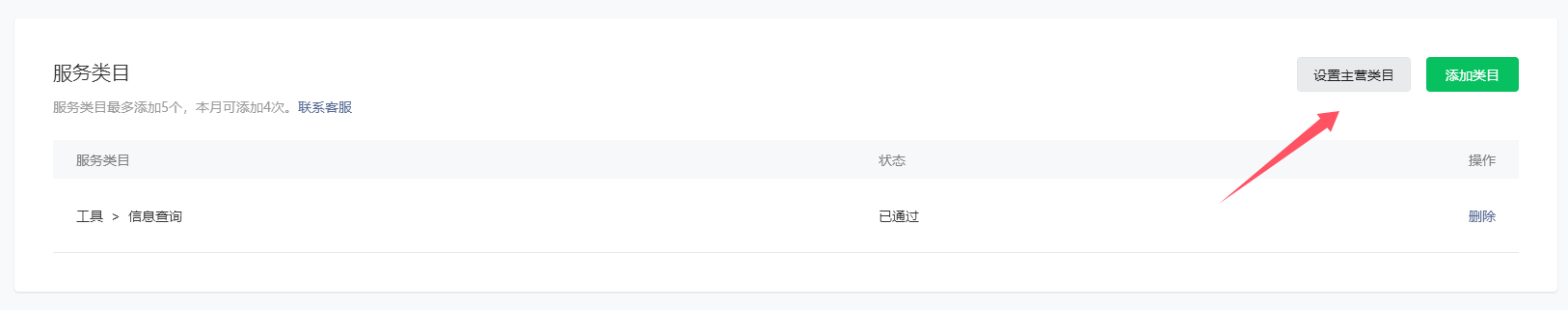 添加好后,设置主营类目为工具 - 信息查询。