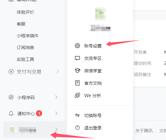 在左侧最下方,点小程序名,账号设置。