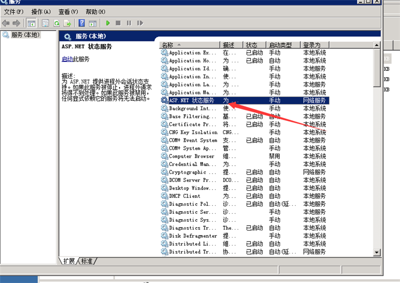 找到asp.net 状态服务 有的写的是ASP.NET State Service