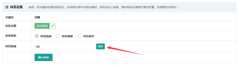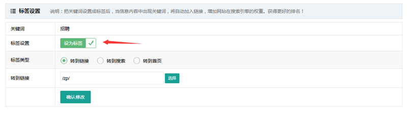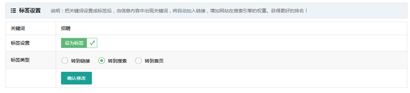设置内页标签能让每条信息内容中的指定关键词链接到网站其它页面中,从而传递权重,吸引搜索引擎收录。