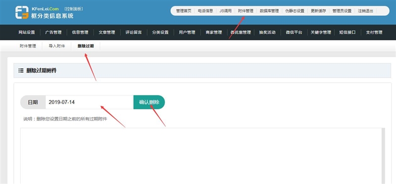 在后台,点附件管理 - 删除过期 选择一下日期,点确认删除