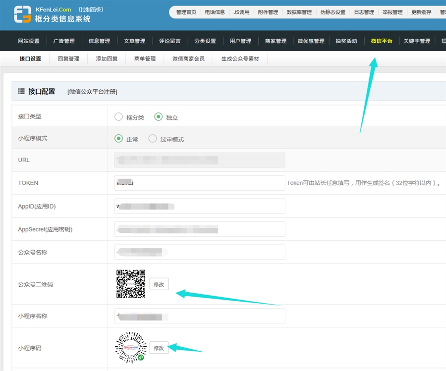 在后台微信平台中,可以修改公众号和小程序的二维码