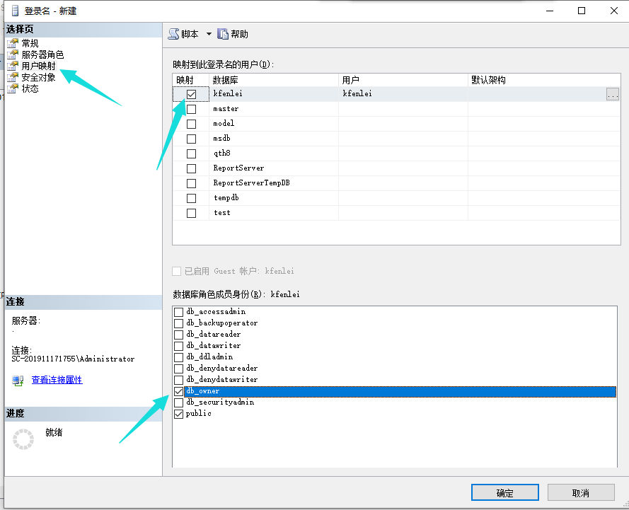 最后点击确定,数据库和数据库登录的账号和密码就全部创建好了
