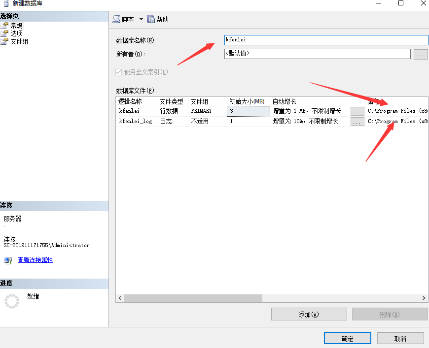 路径这里可以自己指定数据库文件和日志文件的存放目录