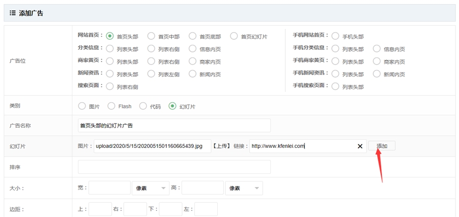 登录后台 广告管理,点击添加广告