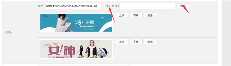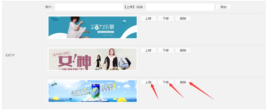 都添加好后,可以通过上移、下移、删除来调用图片顺序和删除图片