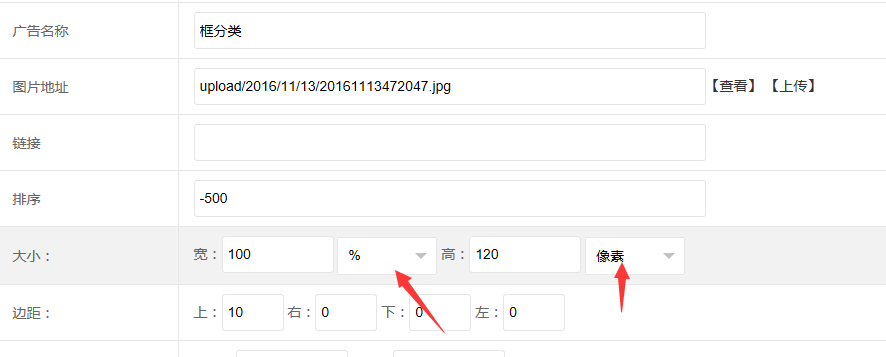 边距是设置广告图片距离上下左右的空白大小