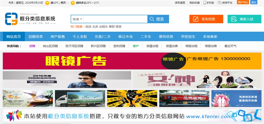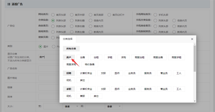 框分类支持每个分类单独设置广告,以房产分类为例