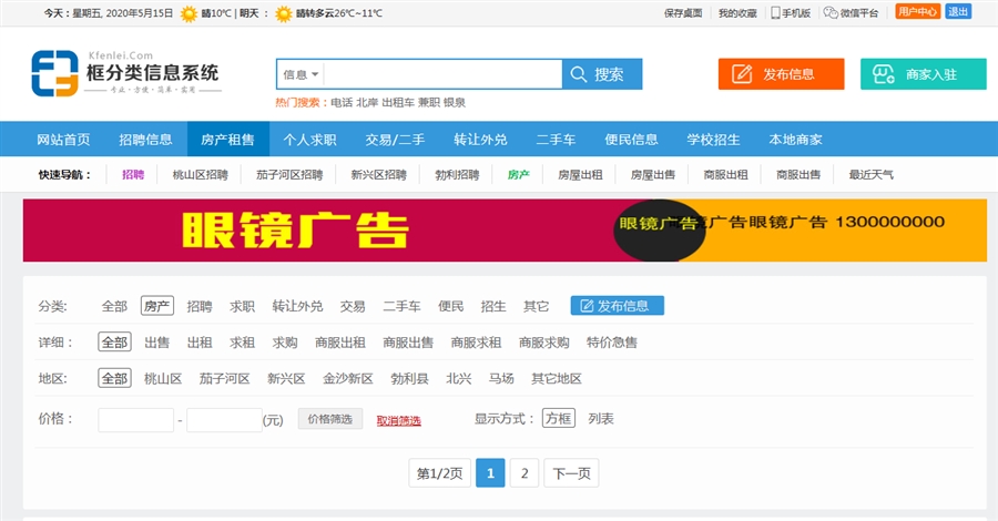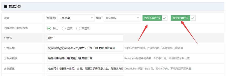 这样设置后,房产分类就会显示自己的独立广告了