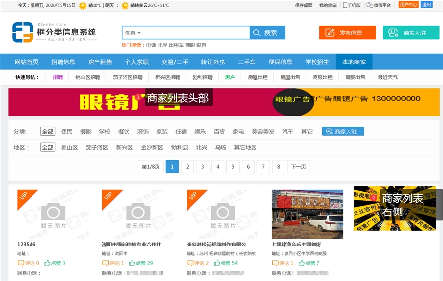 电脑版的分类信息列表头部、右侧、手机版的分类信息列表头部,这三个都可以