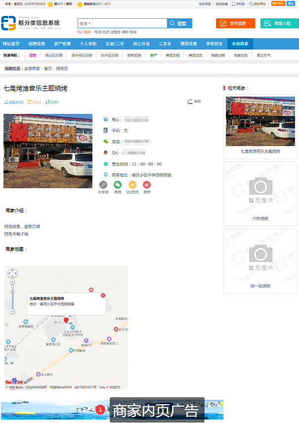 在商家内页的地图下方显示