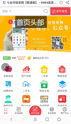 包括分类信息列表头部、分类信息内页头部、商家列表头部、商家内页头部、文章列表头部、文章内页头部、搜索页面头部