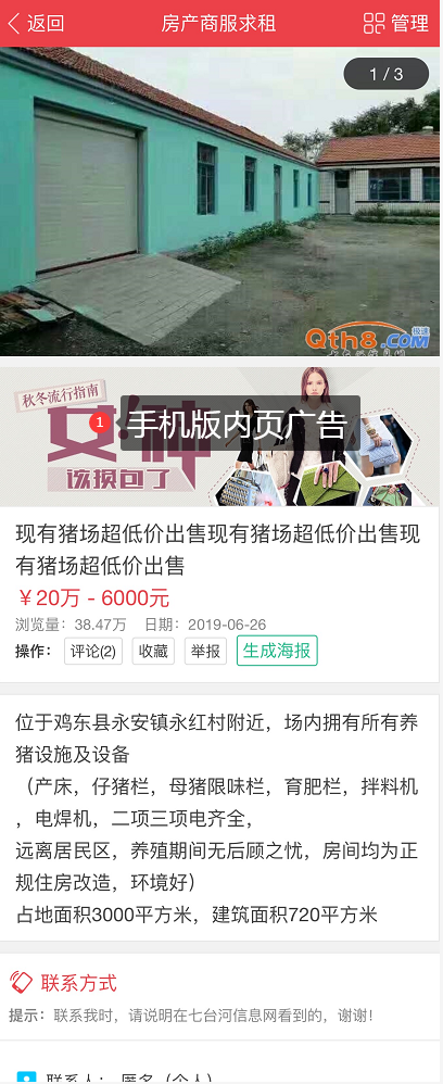 手机版内页广告显示效果