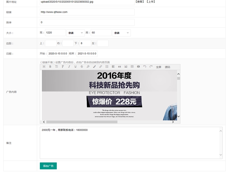 广告管理 - 添加广告
