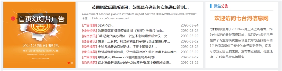 首页中部广告 宽度1220像素,高度不限制,注:有的首页模板没有中部广告
