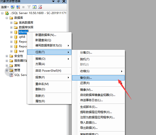 点击数据库,找到要备份的数据库,这里以kfenlei数据库为例